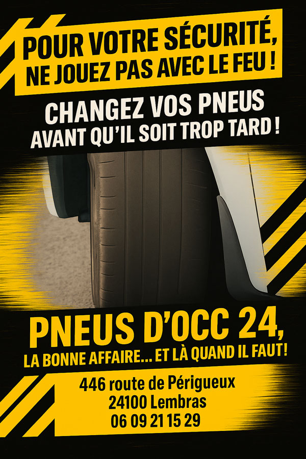 PNEUS D'OCC 24 est votre adresse privilégiée à Bergerac, Creysse, Prigonrieux, Mussidan et Périgueux pour la vente de pneus neufs de toutes marques. Si vous désirez garantir votre sécurité sur la route et améliorer votre expérience de conduite, nous vous donnons des conseils personnalisés pour le choix des pneus adaptés à votre véhicule et à votre usage.